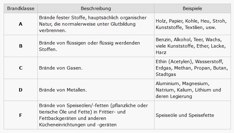 Welche Brandklassen gibt es ?